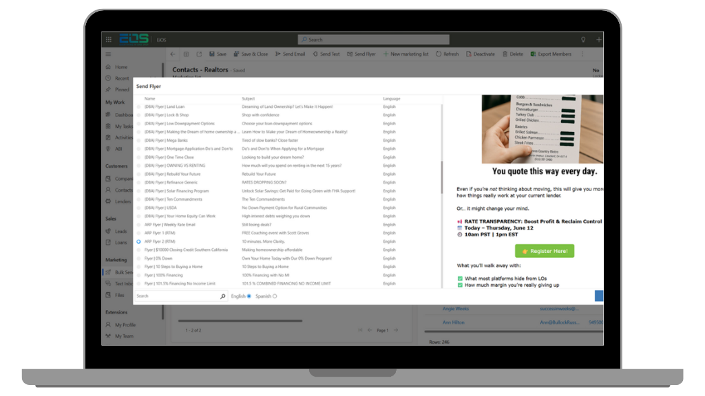 Giving independent loan officers a single, fully connected workspace to manage their workflow by putting leads, loans, pricing, lender lists, bulk marketing, and database alerts in one easy-to-pilot dashboard. Because managing your database should make you money, not waste your time.